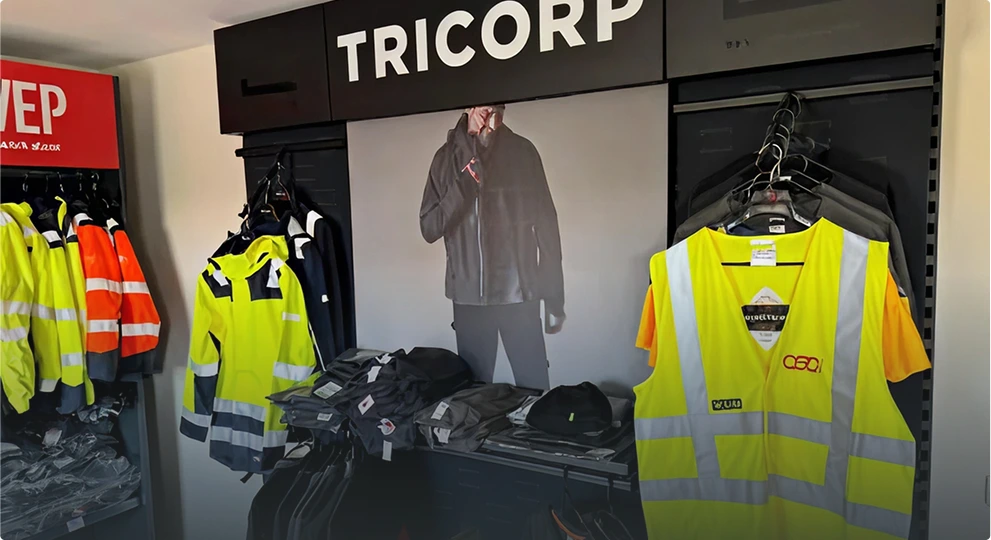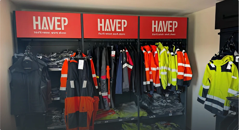 Wir bieten unseren Kunden die Möglichkeit, schützende Arbeitskleidung in unserem Showroom auszuwählen und "zu fühlen".