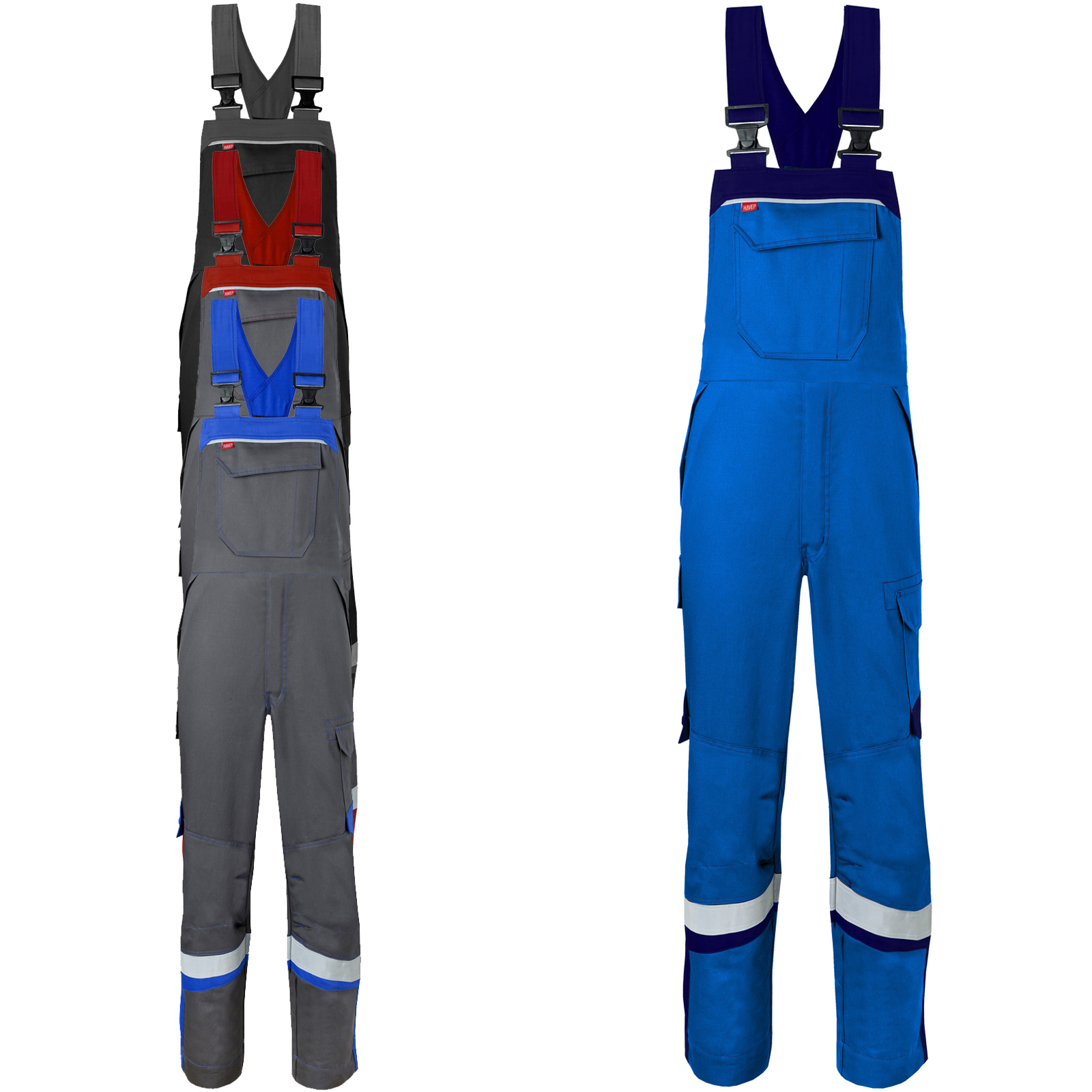 Multinorm Latzhose aus der Kollektion 5 Safety Image+ ("Plus" für noch mehr Leistung) in 4 Farbkombinationen.